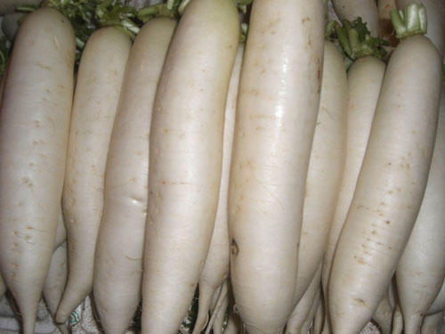 根莖類蔬菜,十字花科蘿卜屬植物。種植有千年歷史,在飲食和中醫(yī)食療領(lǐng)域都有廣泛應(yīng)用。清乾隆庚午年(公元1750年)編修的《如皋縣志》載:“蘿卜,一名萊菔,有紅白二種,四時皆可栽,唯末伏初為善,破甲即可供食,生沙壤者甘而脆,生瘠土者堅而辣?!逼渖?,屬金,入肺,性甘平辛,歸肺脾經(jīng),具有下氣、消食、除疾潤肺、