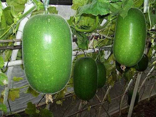 冬瓜(學名:Benincasa hispida (Thunb.) Cogn.),葫蘆科冬瓜屬一年生蔓生或架生草本植物,莖被黃褐色硬毛及長柔毛,有棱溝,葉柄粗壯,被粗硬毛和長柔毛,雌雄同株,花單生,果實長圓柱狀或近球狀,大型,有硬毛和白霜,種子卵形。冬瓜主要分布于亞洲其他熱帶、亞熱帶地區(qū),中國各地地區(qū)均有栽培。中國云南南部(西雙版納