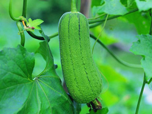 絲瓜(學名:Luffa aegyptiacaMiller )是葫蘆科一年生攀援藤本;莖、枝粗糙,有棱溝,被微柔毛。卷須稍粗壯,被短柔毛,通常2-4歧。葉柄粗糙,近無毛;葉片三角形或近圓形,通常掌狀5-7裂,裂片三角形上面深綠色,粗糙,有疣點,下面淺綠色,有短柔毛,脈掌狀,具白色的短柔毛。雌雄同株。雄花通常15-20朵花,生于總