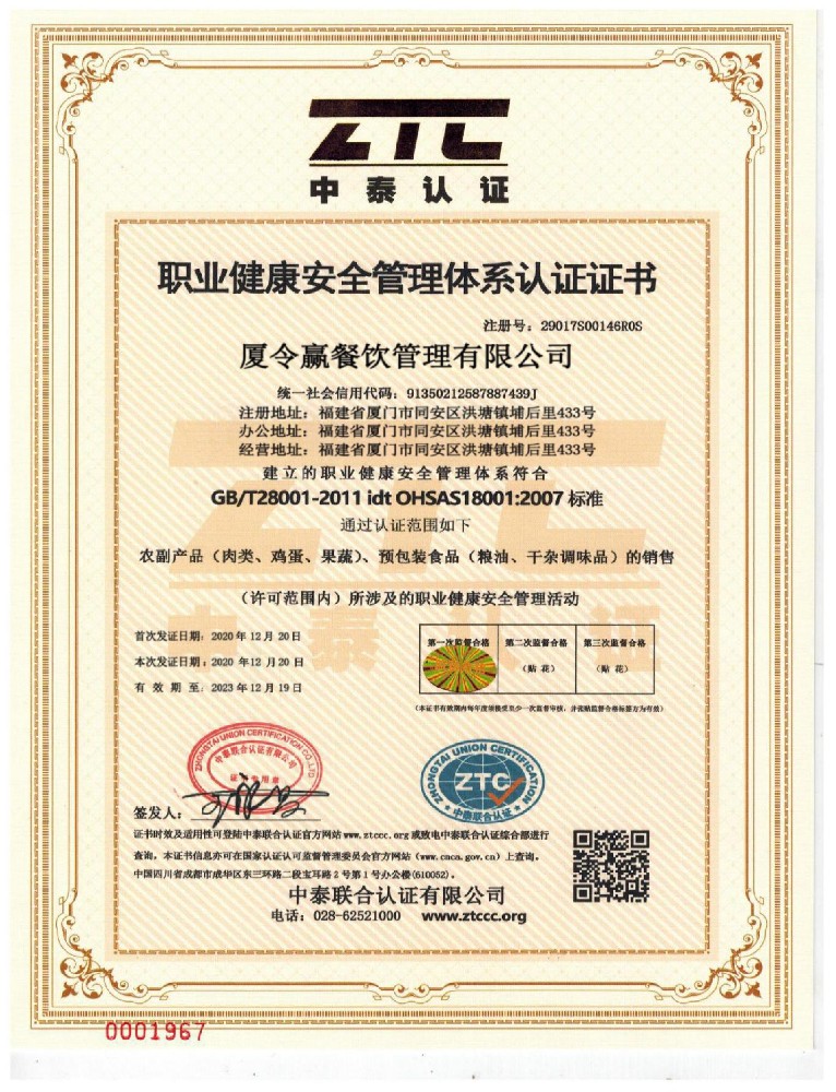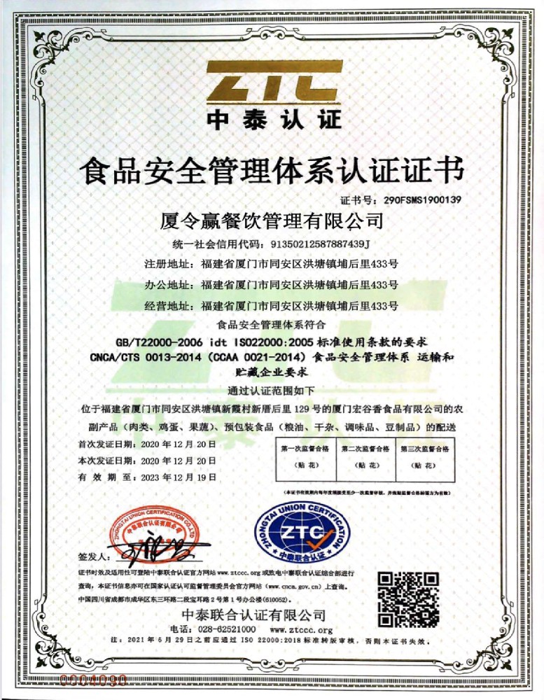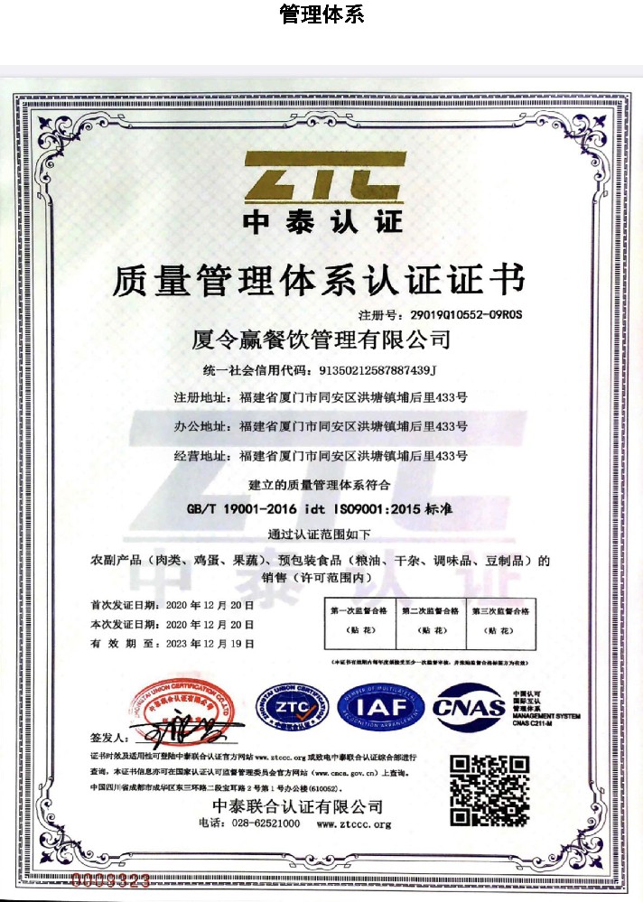 廈令贏餐飲管理有限公司從事食堂蔬菜配送,飯?zhí)贸邪?,食材配送,糧油配送,農(nóng)副產(chǎn)品配送, 在福建各大農(nóng)批市場設(shè)立蔬菜配送分部,擁有專業(yè)的蔬菜冰鮮冷庫及肉制品凍庫,配備蔬菜檢測化驗(yàn)儀器...